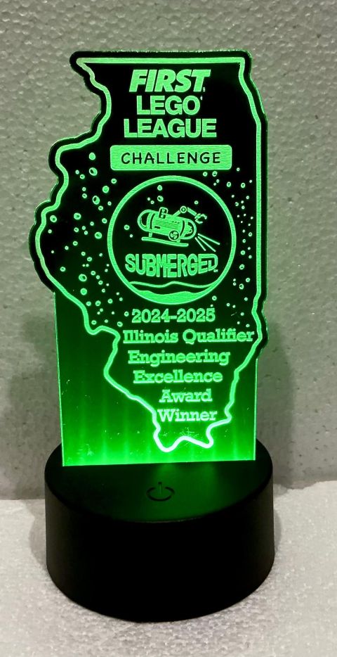 in the FLL Sectionals we won a Innovation Project Finalist Trophey (See Gallery on right) and moved on to the FLL Illinois State competitions
