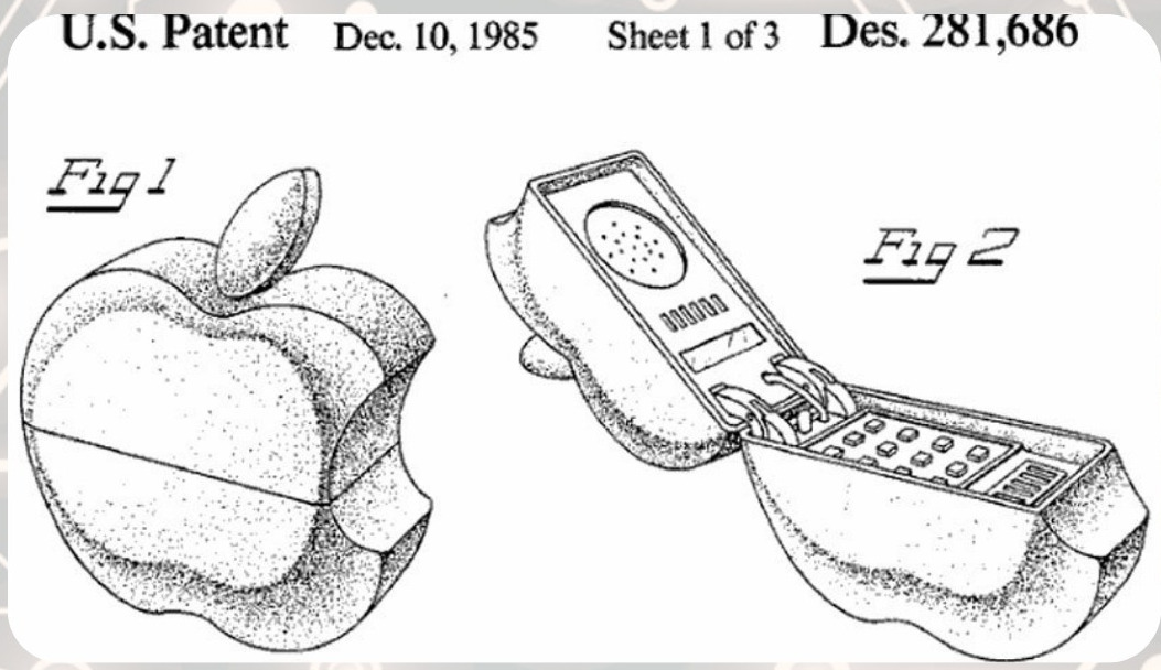 Before the original design for an iPhone, Apple patented a phone design in the shape of an actual apple. It was a flip phone that, when closed, would look like the Apple logo.